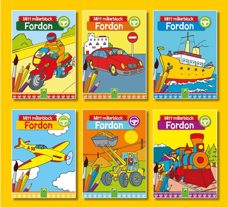 Totalt 192 bilder att färglägga uppdelat på 6 smidiga målarblock som är enkla att ta med på tex resan(115x160mm)