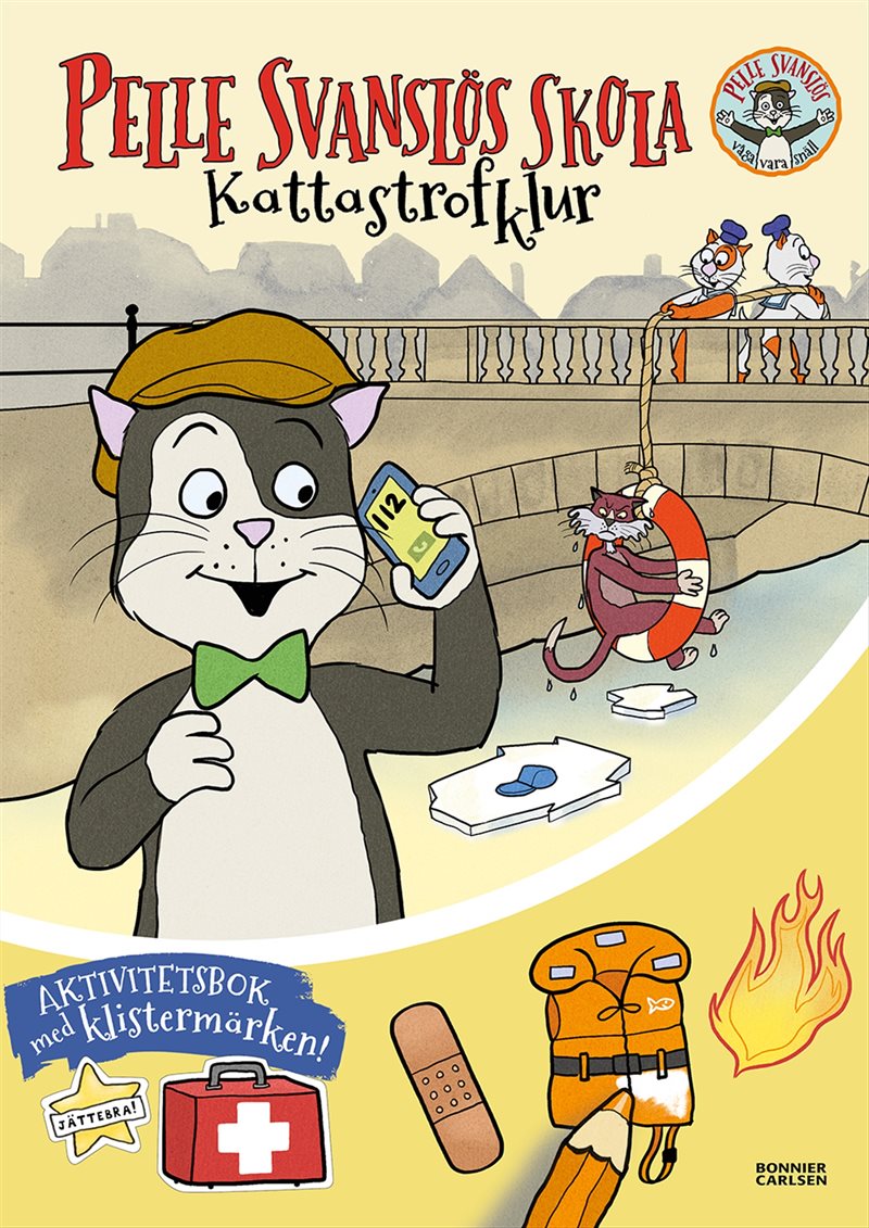 Vill du lära dig mer om eld, vatten och andra farligheter, och samtidigt måla, pyssla och klura? Välkommen till Pelle Svanslös skola! I Gösta Knutssons klassiska Uppsala händer det massor av farligheter, och vi måste hjälpa till: Måla livbojarna, hjälp Frallan när han går vilse i skogen, och hitta katten som behöver räddas på isen. En aktivitetsbok där Gösta Knutssons älskade katter genom roliga aktiviteter, spel och utmaningar lär oss mer om 112 och annat livsviktigt. De över 50 klistermärkena motiverar till lekfullt lärande.