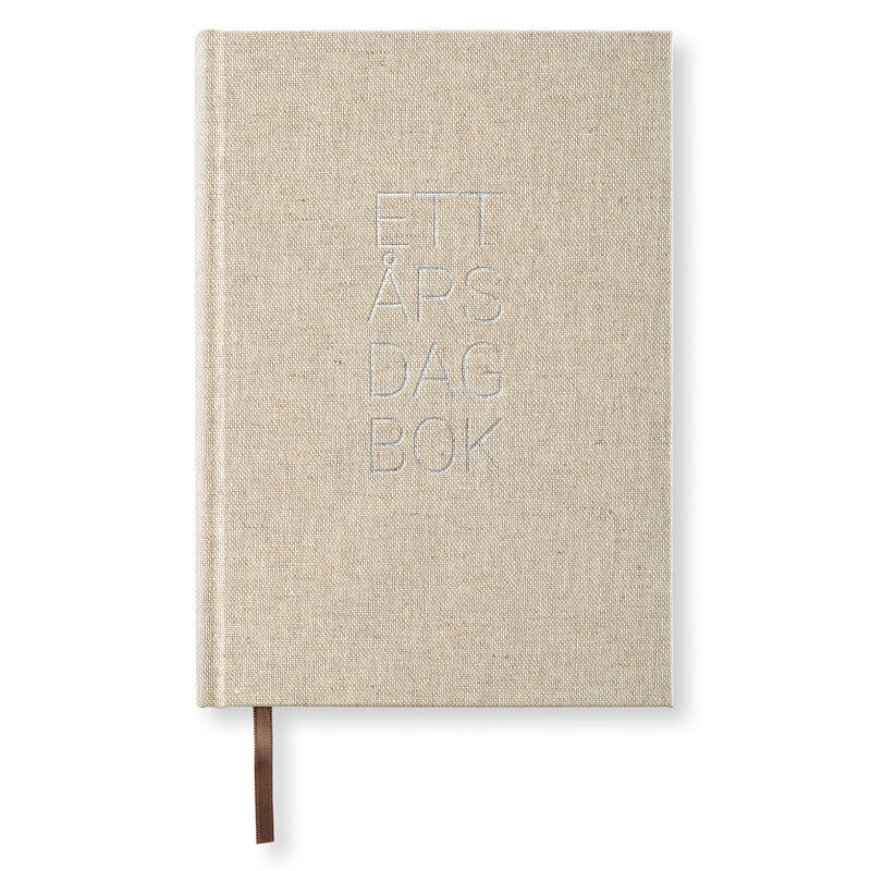1-årsdagbok. Format: A5. Omslag: Tygklädd hård pärm. Inbunden.